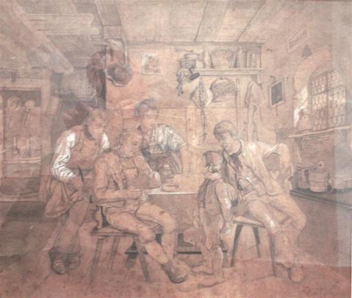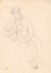 Bei der im Privatbesitz der Familie befindlichen Skizze handelt es sich eindeutig um das Motiv des oben beschriebenen Bildes. Wie der richtige Titel lautet, lässt sich nicht rekonstruieren. Bemerkenswert ist, wie detailliert die Entwurfsskizze ist.