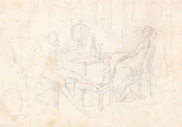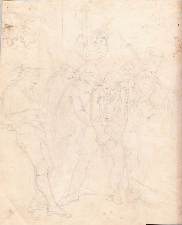 Von Gisbert Flüggen gibt es einige Skizzen, die nicht näher bezeichnet sind. Dabei handelt es sich zumeist um Figurenstudien zu seinen Hauptwerken.
