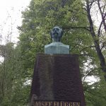 Die beiden Bilder (l. und M.) zeigen die Grabstelle in München, in der Gisbert Flüggen und sein Sohn Joseph beigesetzt sind. Die Büste zeigt Gisbert Flüggen. Seine Frau Catharina ist im Familiengrab der Flüggens in Nürnberg (r.) beerdigt.