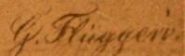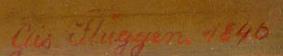 Die Signatur des Ölbildes ist völlig anders als auf allen anderen bekannten Flüggen-Bildern und erscheint im Gegensatz zu den anderen Signaturen auch ausgesprochen weiblich, was den Verdacht nahe legt, dass das Bild von Flüggens Witwe nachträglich signiert worden sein könnte. Dies um so mehr, als der Maler mehrere seiner Bilder nicht signiert hat.