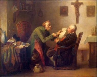 Die Politiker (1846, Öl auf Leinwand, 27.5 x 34.5 cm, signiert)